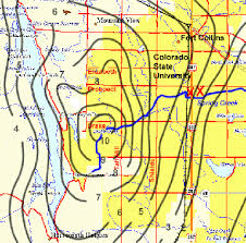 The isohyet map is a type of isoline map that uses lines to show rainfall. This particular map shows the amount of rainfall that led to a flood in Fort Collins in 1997